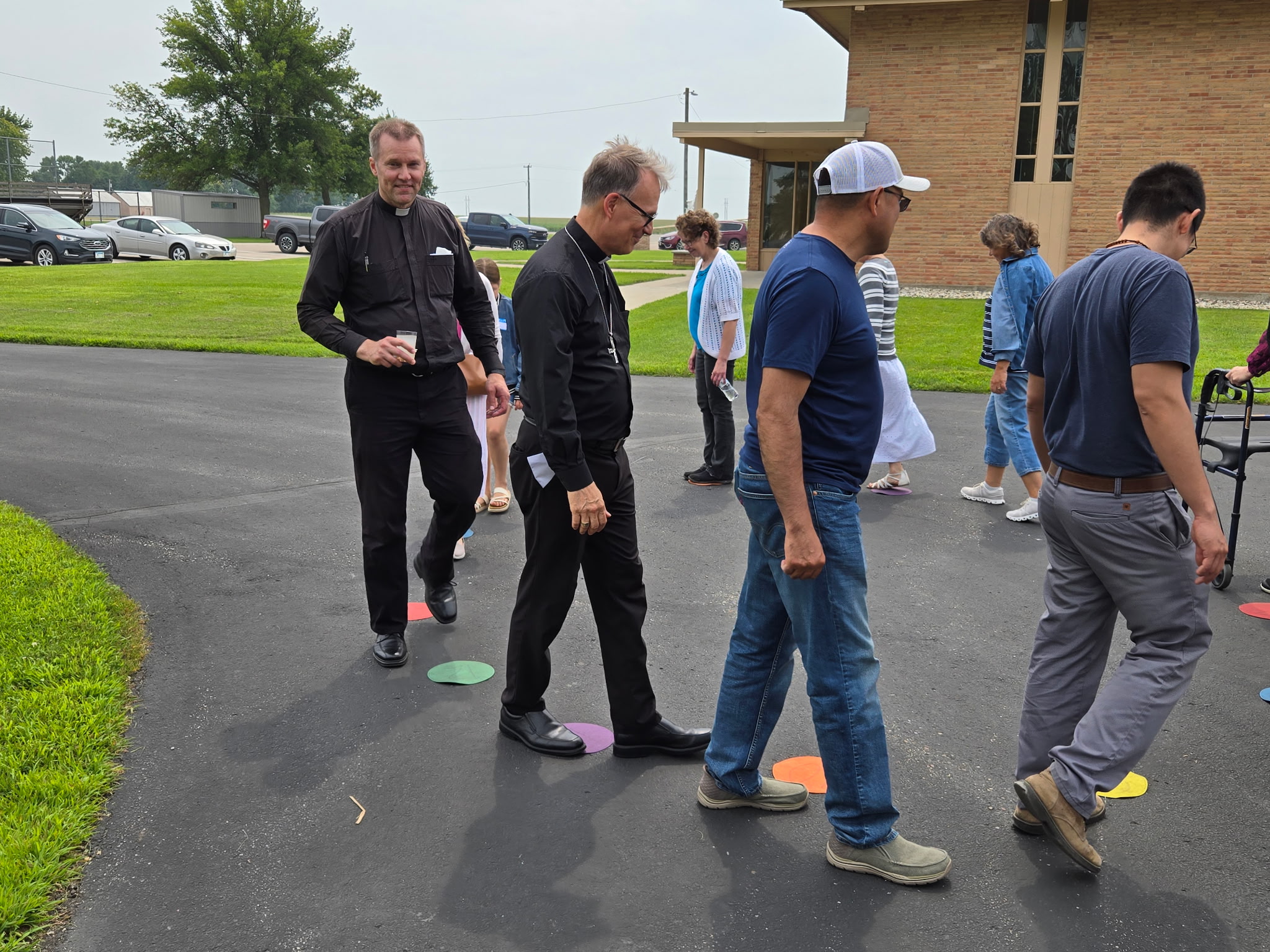3 Pictures above are from the ACC picnic in Chokio on 8-2-25 and show Fr. John Paul and Bishop Patrick Neary participating in the cake walk!